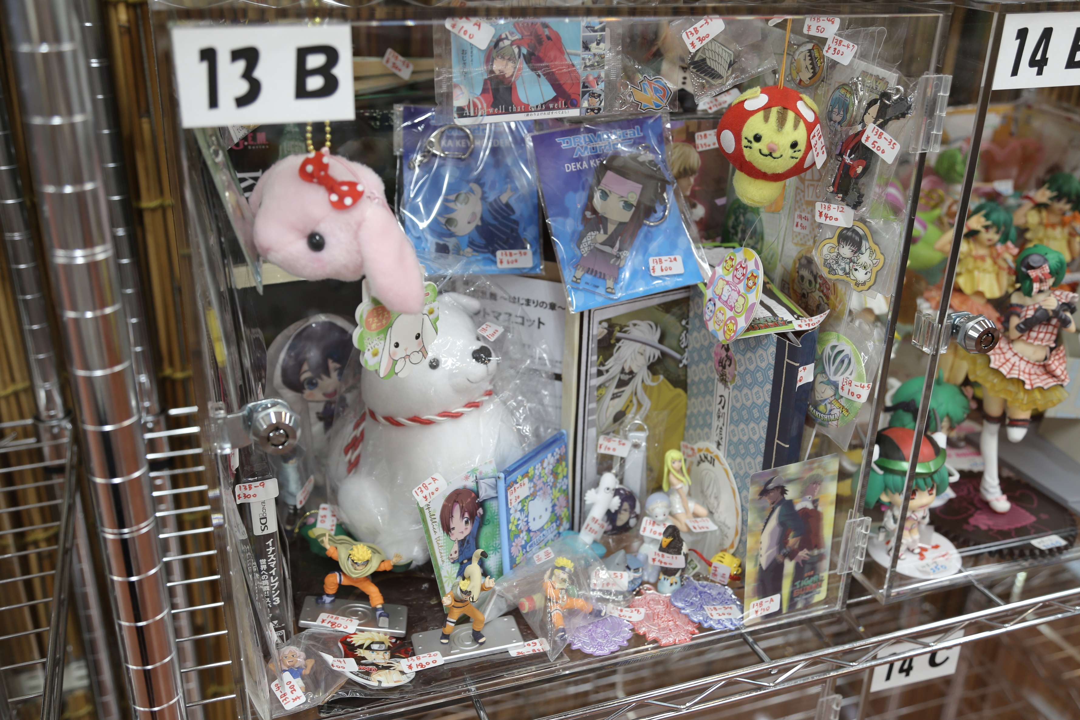 13B:フィギュアやぬいぐるみ、ラバーストラップなどです。