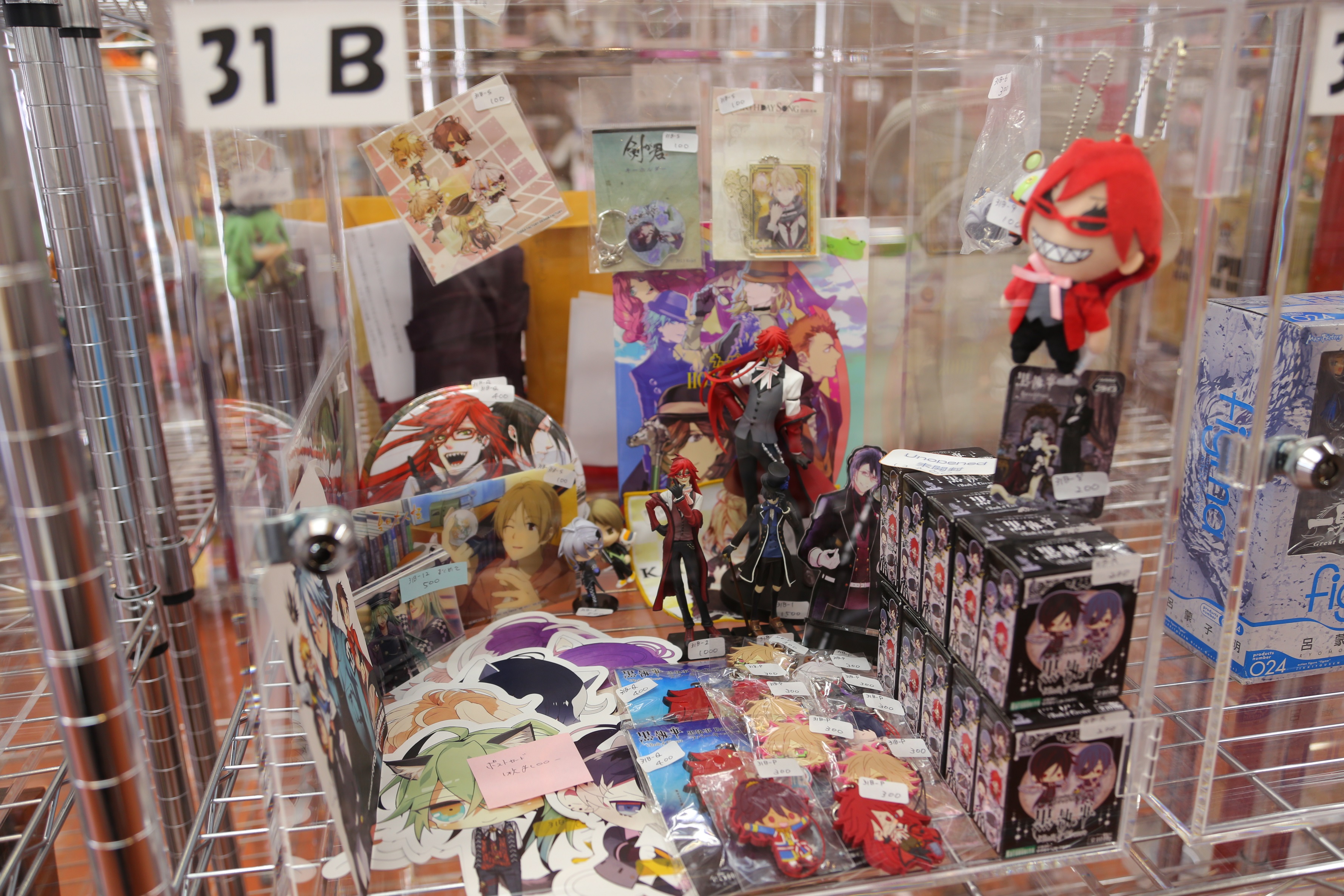 31B:黒執事等のフィギュアやラバーストラップなどです。